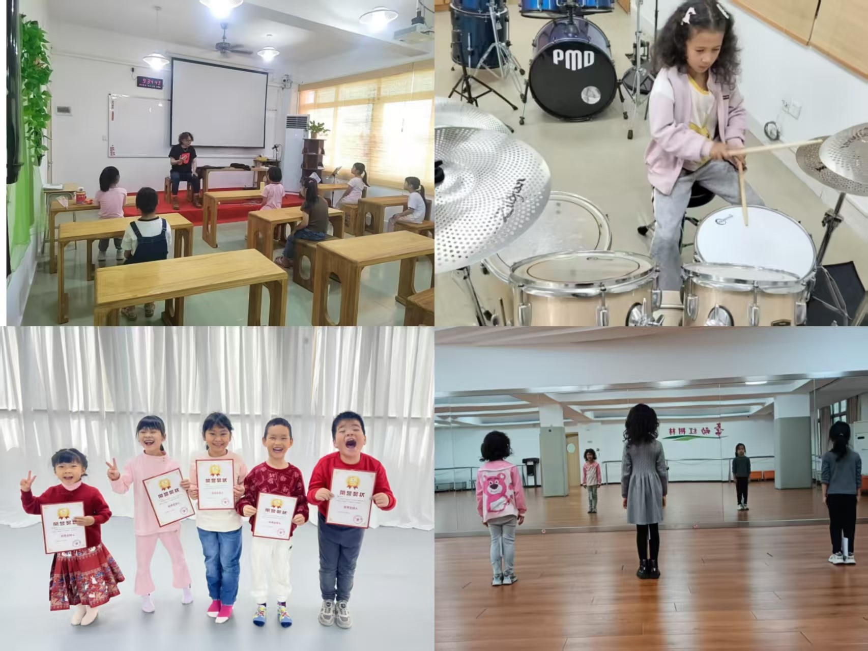 声乐班、爵士鼓班、小主持班、模特班授课现场