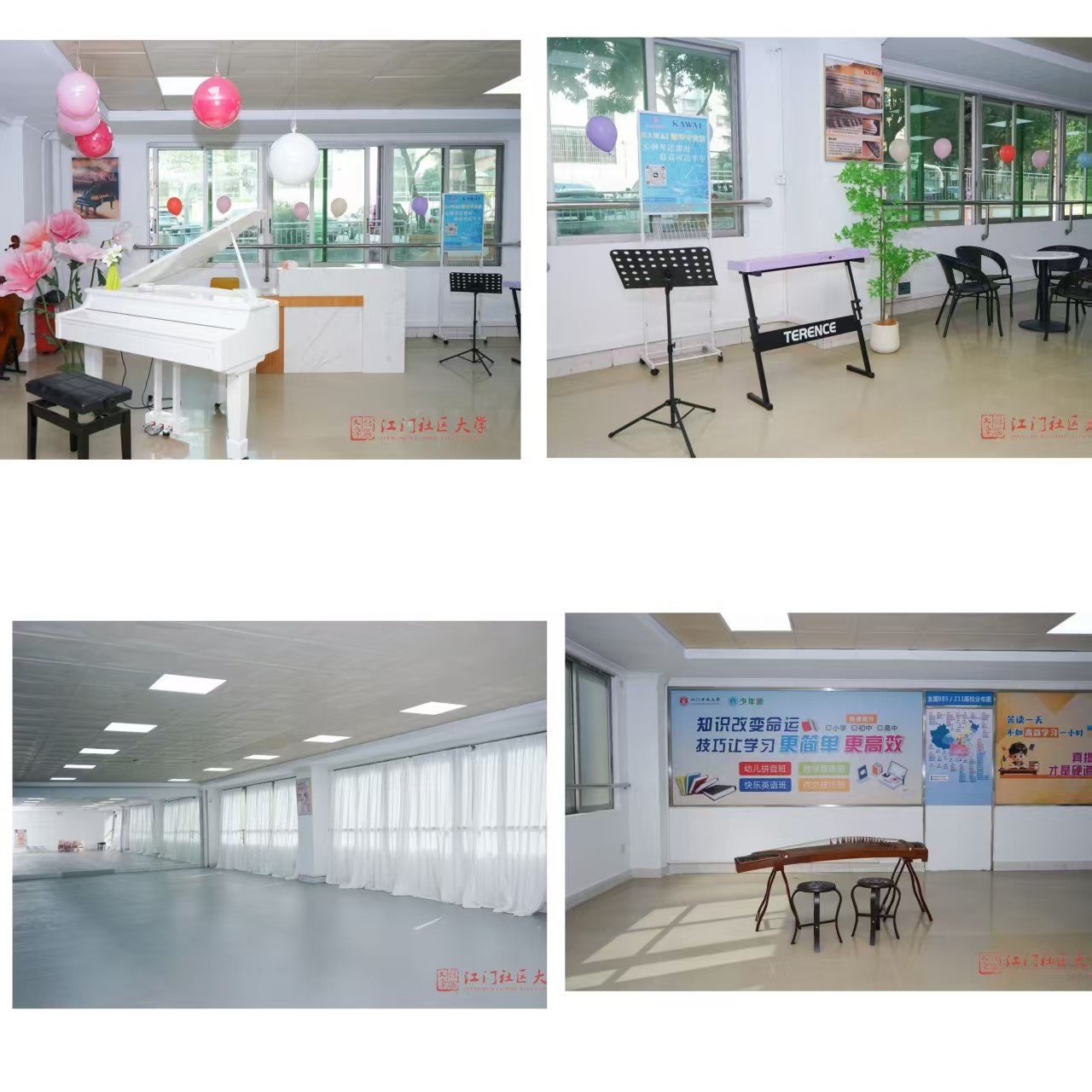 “少年派·青少年艺术中心”坐落于江门社区大学科技实验楼1楼,教学环境宽敞明亮,专业艺术教学设备齐全,美育氛围浓厚。中心课程体系丰富多元,覆盖美术、音乐、表演、语言思维等多个领域,由经验丰富的专职教师与特邀专家共同授课。