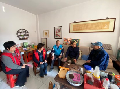 党委副书记、校长甘昱(右二)带领党员义工慰问幸福社区困难党员(右一)
