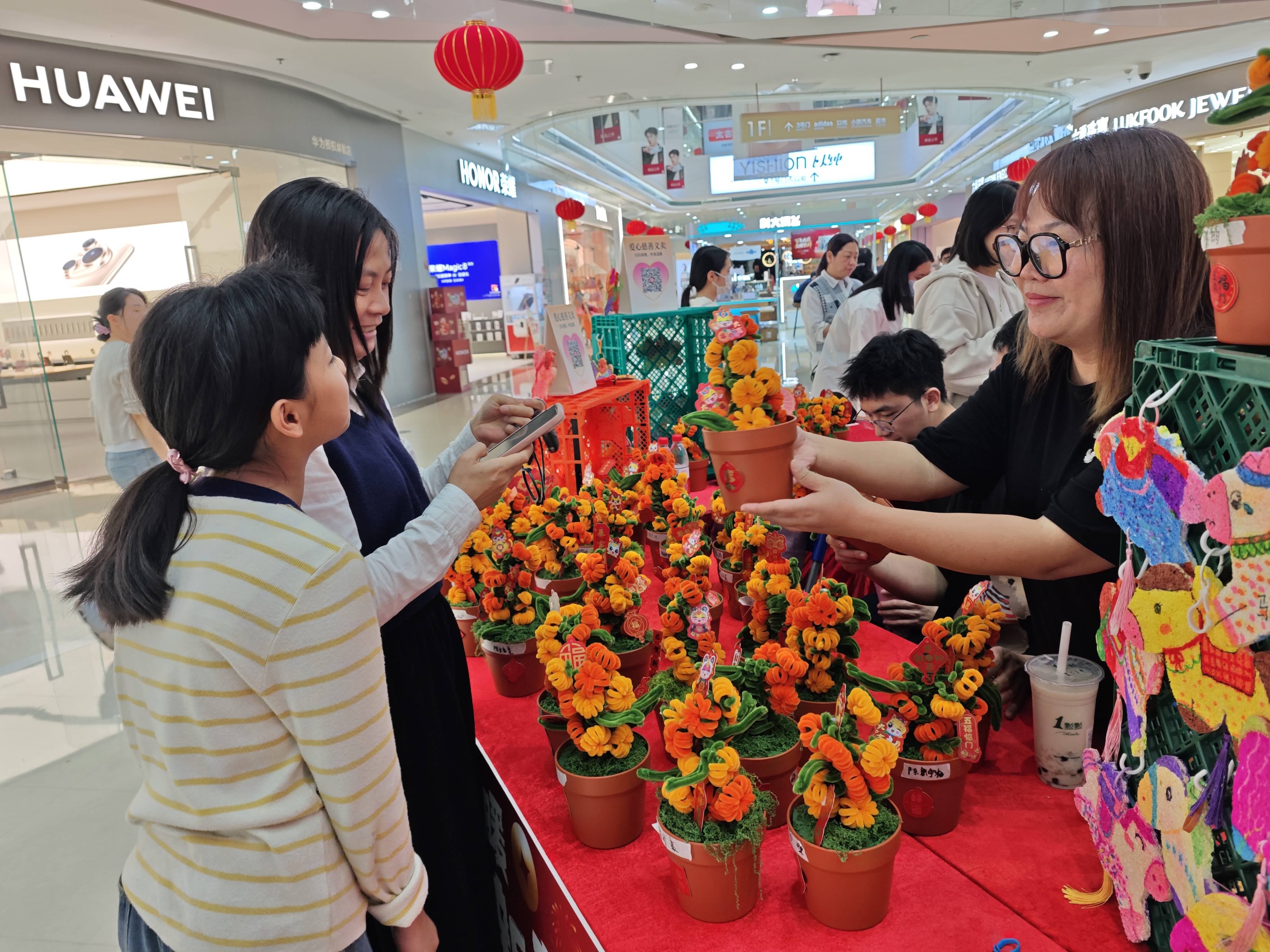 为让孩子们的学习成果得到充分展示,环市街道邻里学苑还举办了“童心筑暖・艺献新春”公益义卖活动,孩子们将冬季期间制作的“柿柿如意”抱抱桶、“福马捏捏乐”挂饰、非遗拓福作品等手工艺品进行义卖,化身“非遗文化小使者”向市民讲解传统技艺,在实践交易中锻炼表达与社交能力,更体会到公益奉献的价值。本次义卖所得善款将全部用于社区公益项目,让孩子们的创意劳动转化为温暖的爱心暖流,为新春增添别样意义。