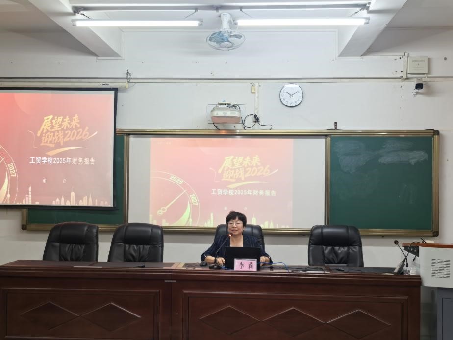 李莉副校长作2025年工贸学校财务报告,清晰梳理学校财务收支情况,明确财务工作规范与保障方向,为今后教育教学、校园建设等各项工作有序开展提供坚实财务支撑。