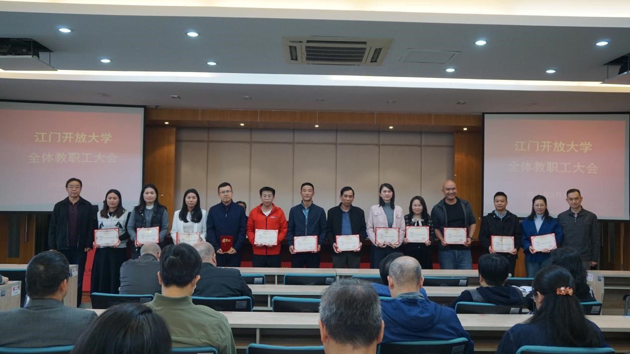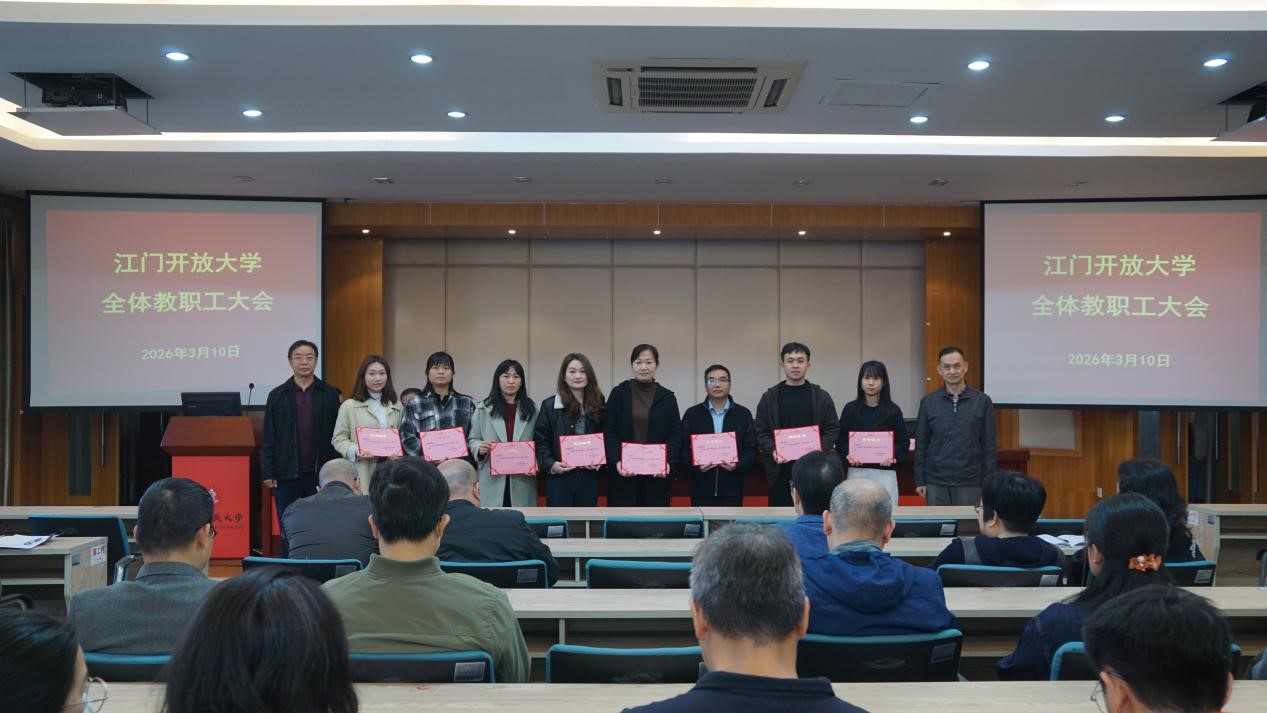 会议还表彰了校本部及下属单位江门市工贸职业技术学校2025年度考核优秀个人,何志斌和甘昱共同为优秀教师颁发奖状。何志斌表示,希望受表彰的老师以此为新的起点,珍惜荣誉,扎实工作,再接再厉,争取新的成绩,同时希望全体教职工以他们为榜样,脚踏实地,勇于开拓,以高度的工作热情、崭新的精神面貌,为学校教育事业改革和发展作出新的贡献。