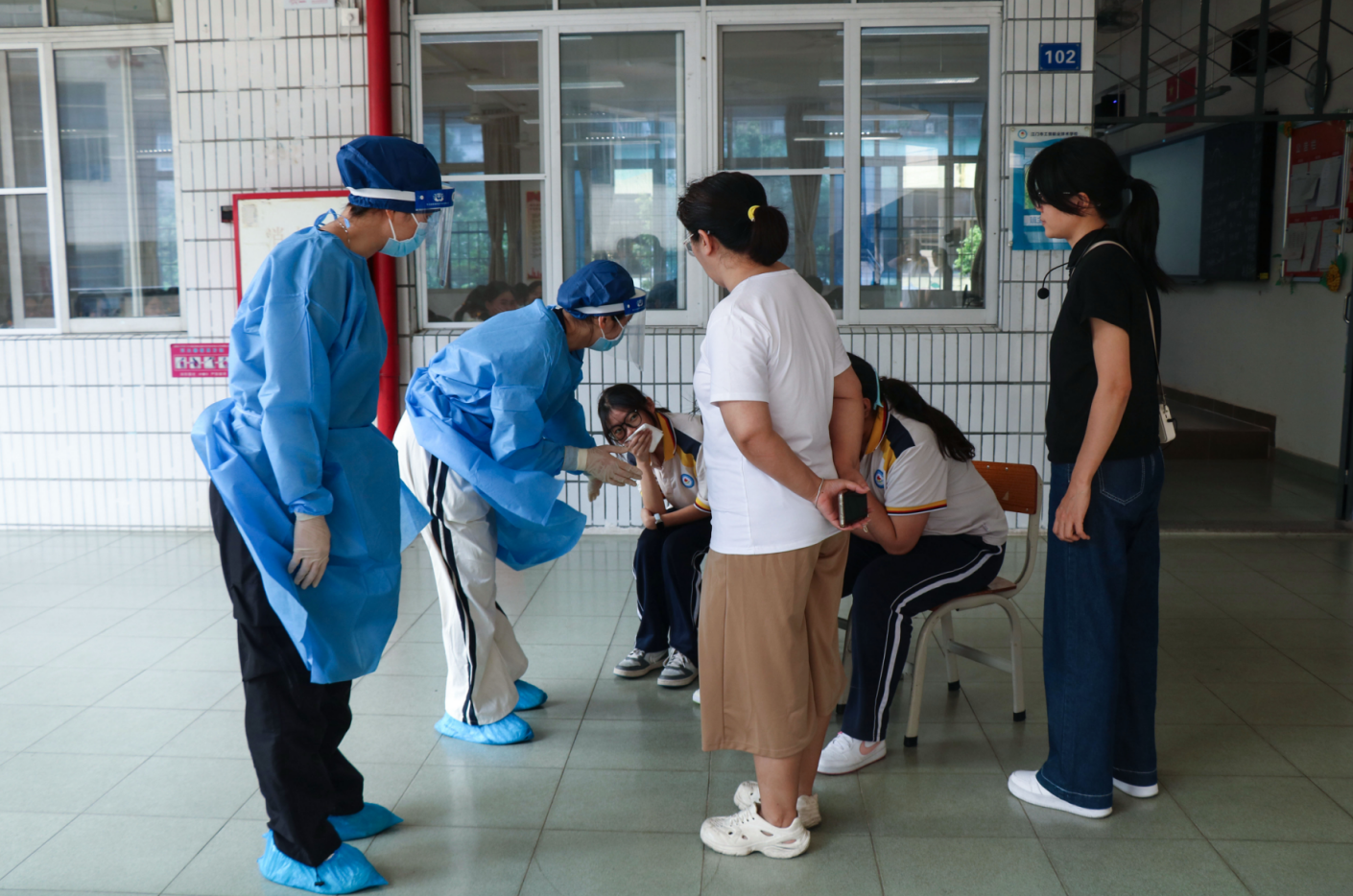 现场管控与人员管理高效落地。教学管理组迅速将涉事班级学生转移至备用教室,恢复正常教学秩序;安保管控组在涉事教室、污染区域及相关卫生间设置警戒线,封闭管控相关区域;医疗处置组全面排查密切接触者,登记信息、建立台账,叮嘱其做好个人防护,不适立即上报。
