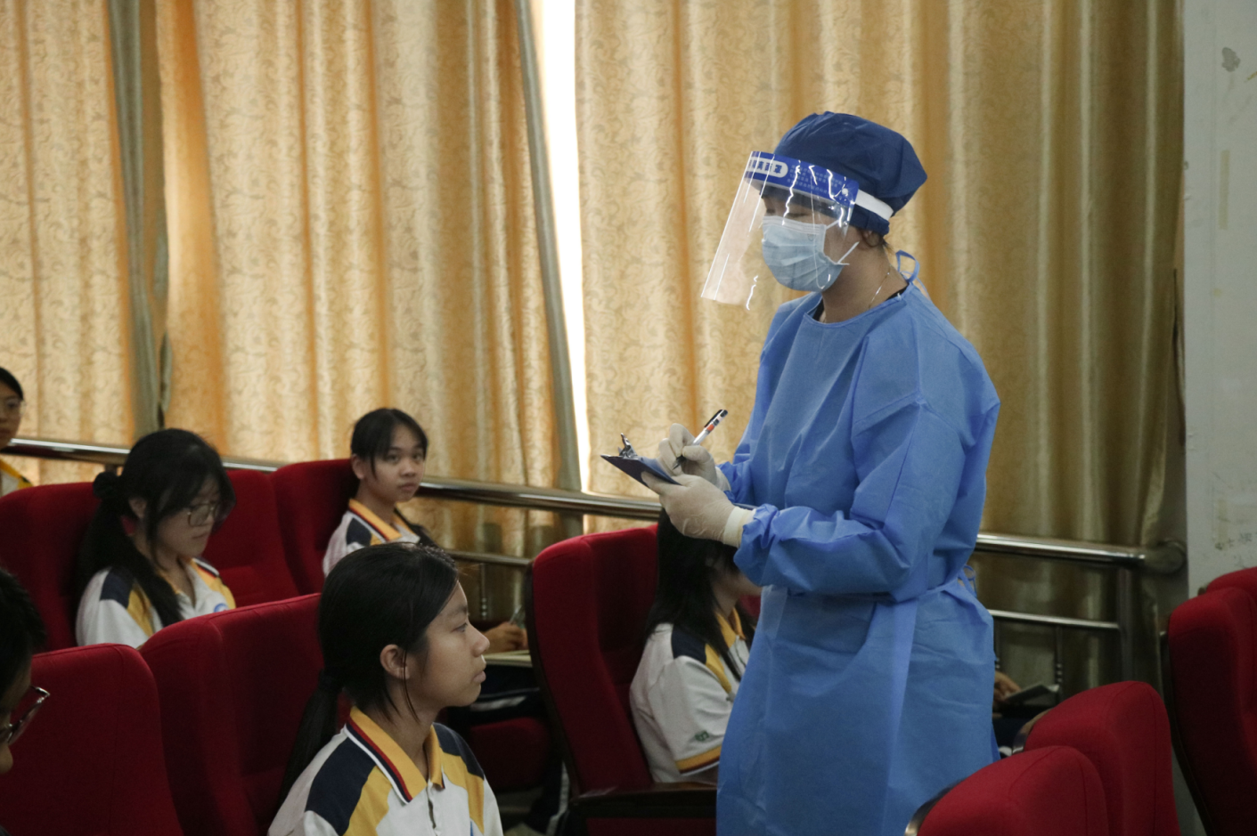 先期发现与初步处置环节迅速推进。任课教师第一时间发现学生不适,即刻暂停教学,安抚学生情绪避免恐慌,将患病学生转移至教室通风处初步隔离,防止交叉接触,并第一时间上报班主任。班主任火速抵达现场,详细问询学生发病细节、饮食及接触史,严控现场、阻拦无关人员进入污染区域,随即向校医室、学生管理部、教务教学部逐级上报。校团委书记伍丽慈接到报告后,立即上报应急处置领导小组副组长李莉副校长,学校按指示正式启动应急处置预案。